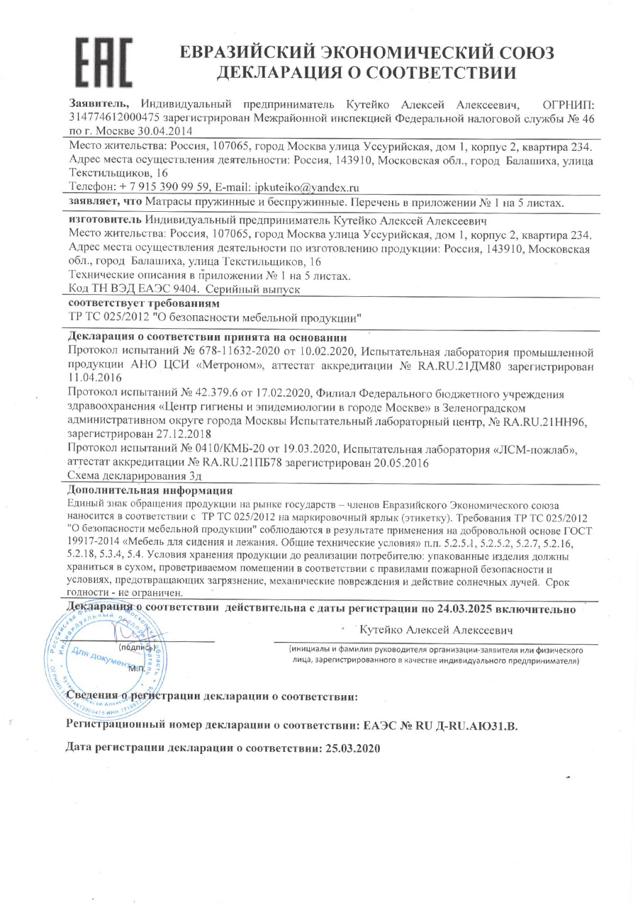 Гарантия распространяется на матрасы, кровати, основания и аксессуары представленные на нашем сайте.