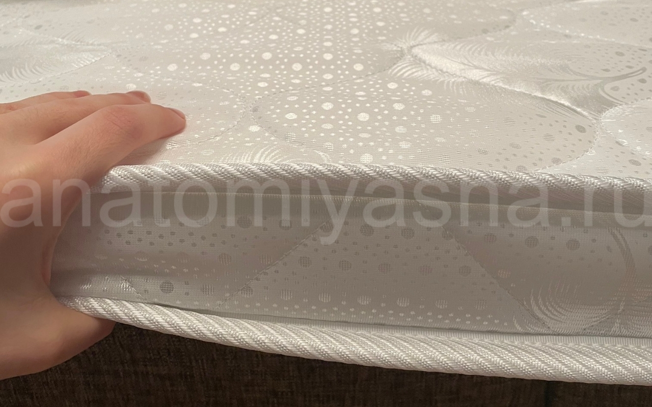 Верхнее покрытие матраса жаккард, стеганый с синтепоном - высокопрочная ткань, состоящая из синтетических материалов с добавлением нитей из натуральных тканей с особым переплетением волокон. Синтетический жаккард может быть двойным (дублированным) или недублированным. Как правило, дублированный жаккард используют в качестве верхнего покрытия для матрасов, чехлов и наматрасников. Самой важной характеристикой ткани является его прочность и износостойкость.